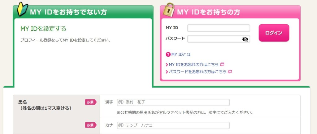 次に、以下のような画面が出るので、必須項目を入力してMY IDを獲得します。